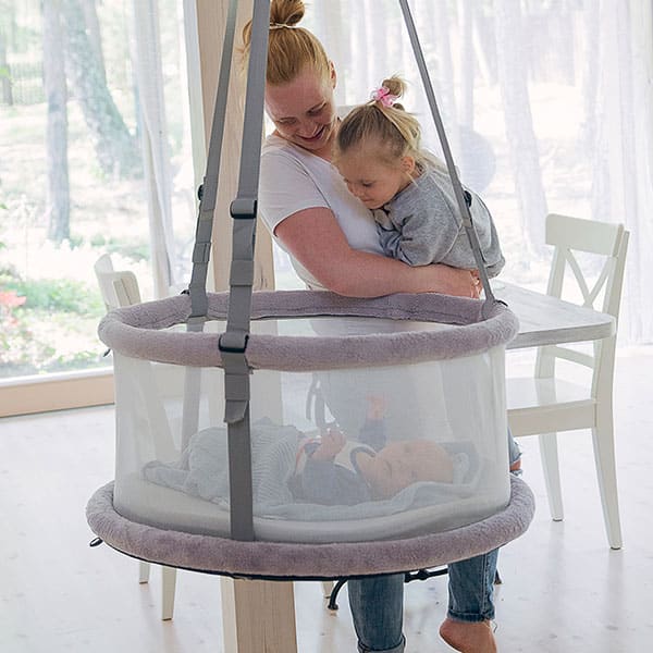 Prosty, innowacyjny design kołyski sprawia, że pasuje do większości nowoczesnych wnętrz domowych, a jej lekka konstrukcja umożliwia łatwe przenoszenie z miejsca na miejsce.