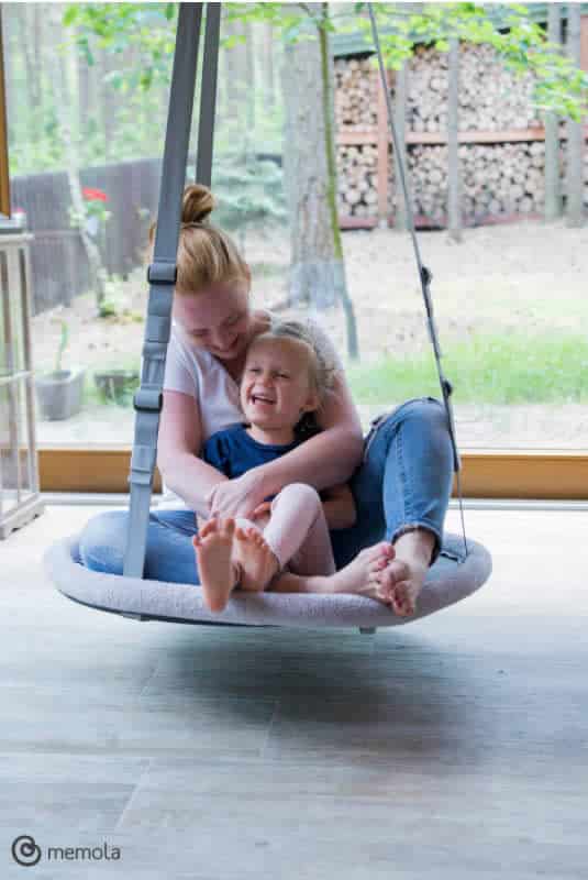 Ostateczna decyzja należy do rodziców,a my chcielibyśmy zwrócić uwagę, że przy częstym użytkowaniu z większym obciążeniem wzrasta obciążenie na pasy i haki. Zalecamy zwrócenie uwagi na długoterminowy stan optyczny huśtawki, jeśli planujecie korzystać z niej razem z dzieckiem.