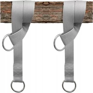 Nie trzeba wiercić haków w belkach – pasy można owinąć wokół belek, a następnie przymocować do nich kołyskę. Podobnie można wykorzystać drążek do ćwiczeń montowany w drzwiach.