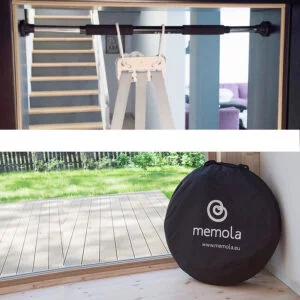 Drążek do podciągania z możliwością zawieszenia: idealne rozwiązanie podczas podróży, kiedy chcesz zabrać Memolę do przyjaciół lub dziadków. Memola sprawdza się także jako przenośne łóżeczko podróżne.