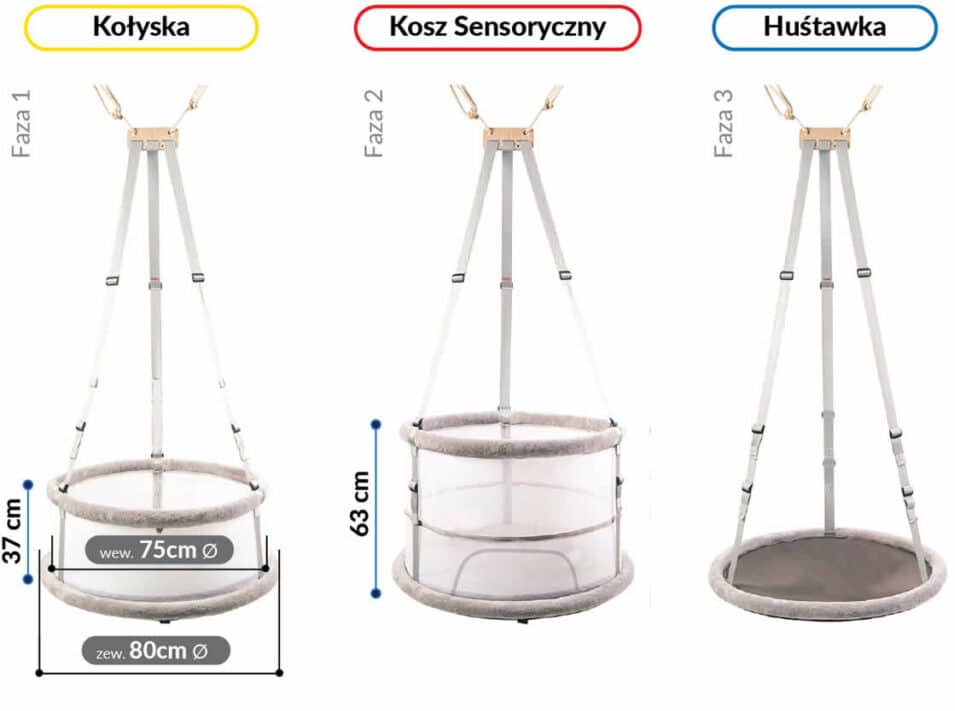 Przekształcenie kosza sensorycznego w huśtawkę jest możliwe około 3. roku życia dziecka, a huśtawka może być używana aż do 12. roku życia!