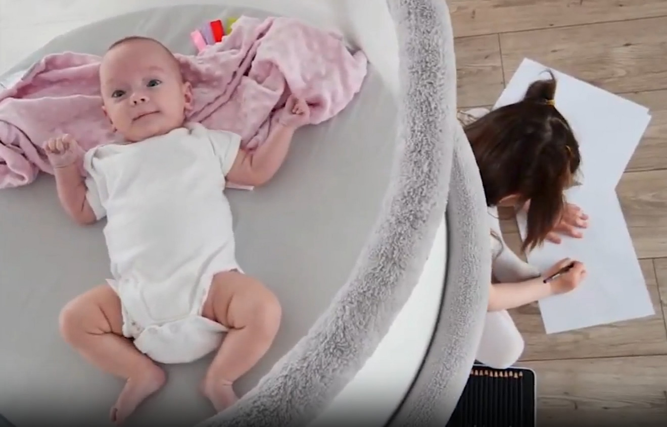 Przezroczyste ścianki, swoboda ruchu i naturalne kołysanie wspierają samodzielność — dokładnie tak, jak zakłada pedagogika Montessori.