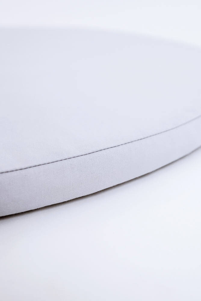 Prześcieradło z gumką na okrągły materac Memoli jest uszyte z wysokiej jakości bawełny. Delikatny odcień szarości pasuje do estetyki Memoli, a staranne wykonanie sprawia, że prześcieradło długo zachowuje swój wygląd.